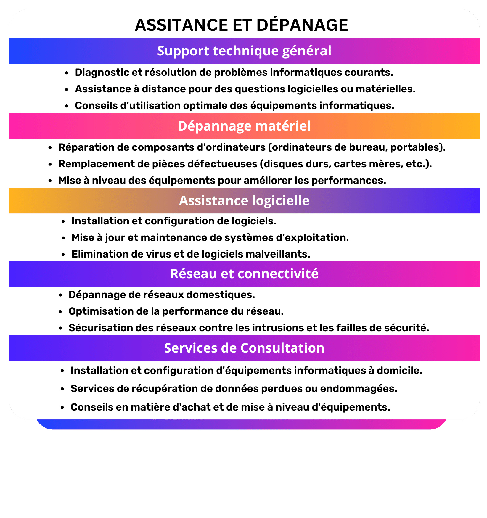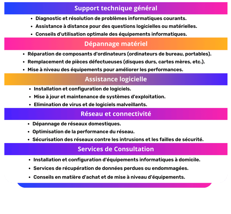 Avec notre assistance personnalisée, dépannage, et conseils experts, nous vous aidons à naviguer et résoudre tout défi informatique.